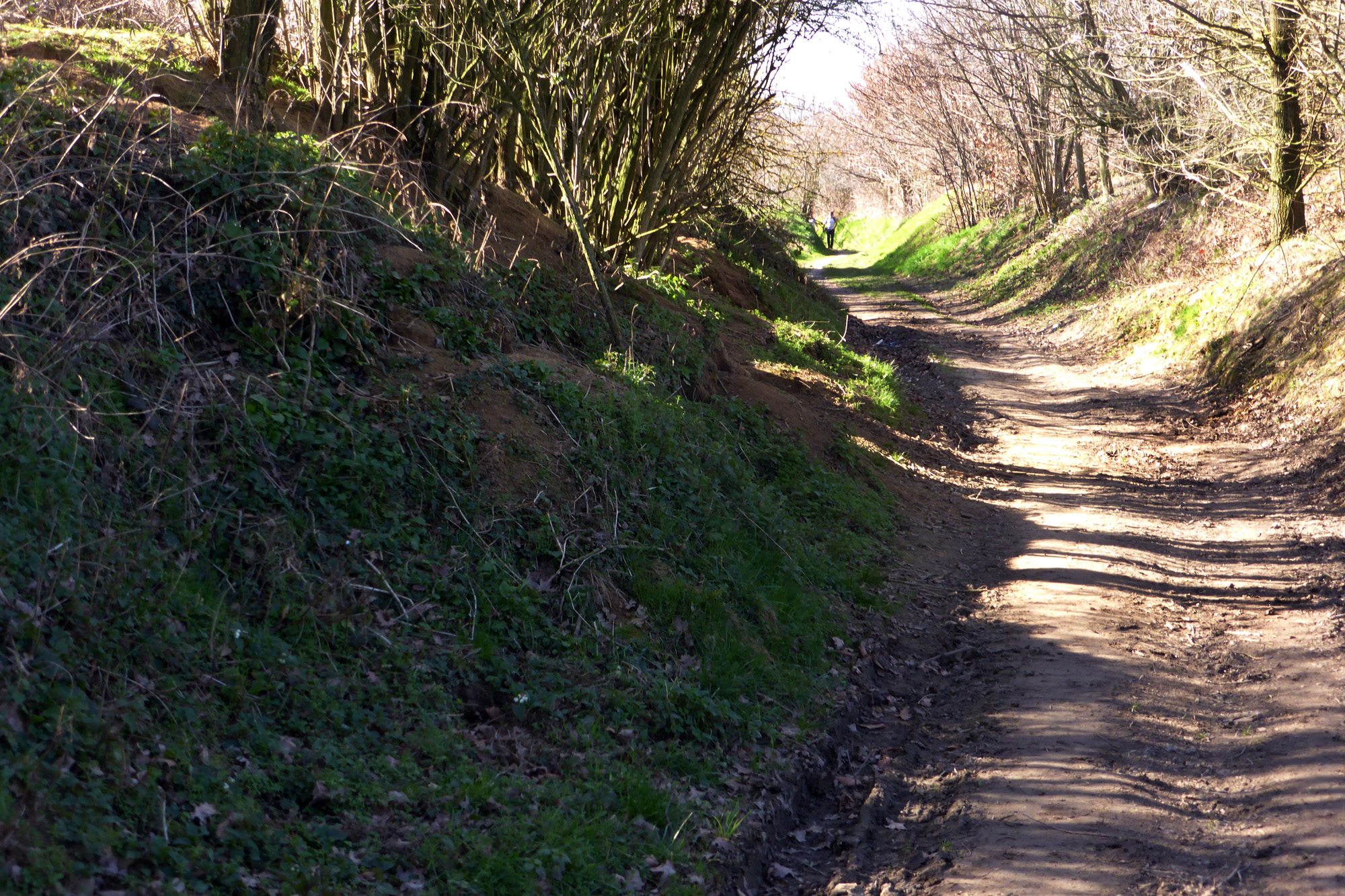 In Slenaken is er zowaar om elf uur al een terras open. We drinken koffie, die smaakt gelukkig die goed want het gezicht van de ober staat op onweer, er kan geen woord of groet af, jammer dat we niet iets doorgelopen waren naar het volgende terras.Waar wij zijn heet hotel Berg en Dal, op een hoek, daar moet je dus niet zijn. Van Slenaken gaan we richting Epen, totaal hoogte verschil ongeveer 200 meter, dat lijkt niet veel maar het zijn hele steile stukken over oude holle stenen paden. Het is echt een goede generale voor als je de camino gaat lopen. Eerlijk gezegd vind ik het laatste stuk vanaf Sarria naar Santiago de Compostella makkelijker dan de Krijtlandroute.