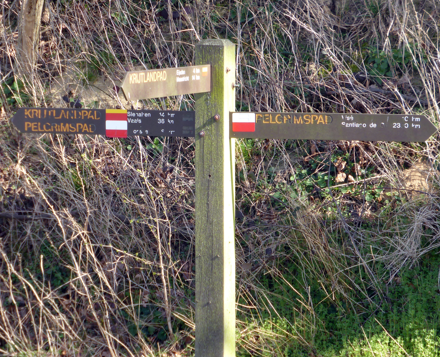 De bedoeling vandaag is, om er een beetje in te komen, tot Noorbeek te lopen waar we bij een adres van vrienden van de fiets hebben gereserveerd.Dat zou volgens het boekje 13 km zijn, maar het blijkt ‘s-avonds toch alles bij elkaar 19.6 km te zijn.