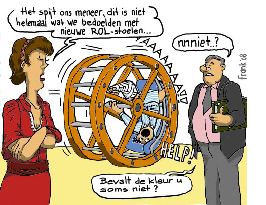 Het is woensdag en vandaag ga ik met Marijke naar de supportbeurs, dit is een beurs voor mensen met een fysieke beperking. als we bij de jaarbeurs in Utrecht aankomen worden naar P4 gedirigeerd. Het is behoorlijk regenachtig. Auto geparkeerd, rolstoel eruit en Marijke in de rolstoel. Dan begint de eerste beproeving, ongeveer driehonderd meter lopen over betonplaten, kedeng, kedeng, ze wordt al aardig door elkaar geschut. Je loopt op een parkeerterrein en moet toch op een of andere manier eraf. De slagbomen zijn zo breed dat je daar niet langs kunt met je rolstoel, het kan wel over de stoep. Oei, geen aflopende stoep, alles zo’n 15 cm hoog, eerst met moeite erop en aan de andere kant weer eraf. Het regent nog steeds. Dan moet je een helling op om bij een brug te komen die over een watertje loopt. Prachtige stenen helling, alleen erg rolstoelonvriendelijk, hier wordt je echt door elkaar geschut, als je net wat drank gedronken hebt en wat ijs gegeten zou je een perfecte cocktail kunnen shaken. Dan ga je die brug over en zie je een rijtje mensen in rolstoel voor de lift wachten. Een kleine lift waar precies een rolstoel in kan. En dan het echte leuke, de voetgangers kant van de brug en trap naar beneden is overdekt, de kant van de lift dus niet. Welke dure architect bedenkt dit nou. Met ongeveer 14 wachtende lift gebruikers voor ons kun je wel bedenken dat we aardig doorweekt waren.
