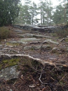 Ik ben vier dagen in Zweden en dan moet je natuurlijk ook een stukje lopen. Pal achter het huis van mijn (s)zoon loopt een lange afstandspad, de E6. We lopen van Visinge naar Angarn een stuk van 14 km. De weg doet mij denken aan de camino primitivo, ruig, veel rotsen en stenige paden.