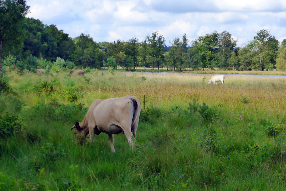 Het is woensdagochtend kwart voor acht en het zonnetje schijnt in bed op mijn gezicht. Het is tijd om op te staan, sportkleding aan om met poles een stukje te gaan lopen. Het Leersumseveld is een van mijn favoriete plekken om dat te doen. Half negen loop ik in mijn eentje daar mij uit te sloven met poles(nordic walking stokken) om toch wel gemiddeld zes en een halve km per uur te lopen. Maar de natuur is zo ontzettend mooi hier dat het zonde is om zo hard alles voorbij te lopen. Gelukkig heb ik mijn compactcamera altijd bij mij en sta vaak stil om mooie plaatjes te schieten. De heide staat alweer paars te wezen, de (wilde)runderen grazen vredig en het water van het meer kabbelt rustig. Bijna op het einde van mijn tochtje, het is maar net 6 km, kom ik pas een paar mensen tegen.