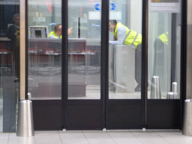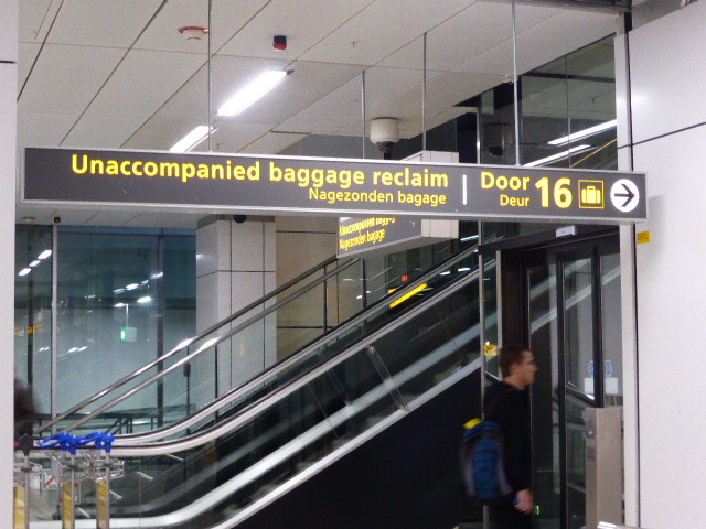 Naar boven naar deur 16. Dit is een kaal hokje naast de roltrap en achter een nog kalere desk zit een jongeman onderuit belangrijk te wezen. Wat kan ik voor u doen? Na het hele verhaal te hebben verteld zegt hij: Dan heb ik wel uw instapkaart nodig. Die heb ik niet want met de KLM app check je in en staat je boardingpass op je telefoon, geen papier meer. Ik werk hier hier en je krijgt altijd een papiereninstapkaart. Nee, dus en we laten het hem zien, we mogen dan wel tot de rimpelgeneratie horen maar blijven wel op de hoogte van de laatste gadgets en rustig blijven vooral rustig blijven al zou je hem wel eens door elkaar willen schudden. Het is niet mijn pakkiean,  maar ik zal nog een keer bellen met die dame van de transferbalie, nee die weet er ook niets van, ik had het niet hoeven doen maar nu doe ik ook niets meer, gaat u maar naar de balie van de KLM, die zit hierboven. De roltrap op dus en daar is de KLM balie.