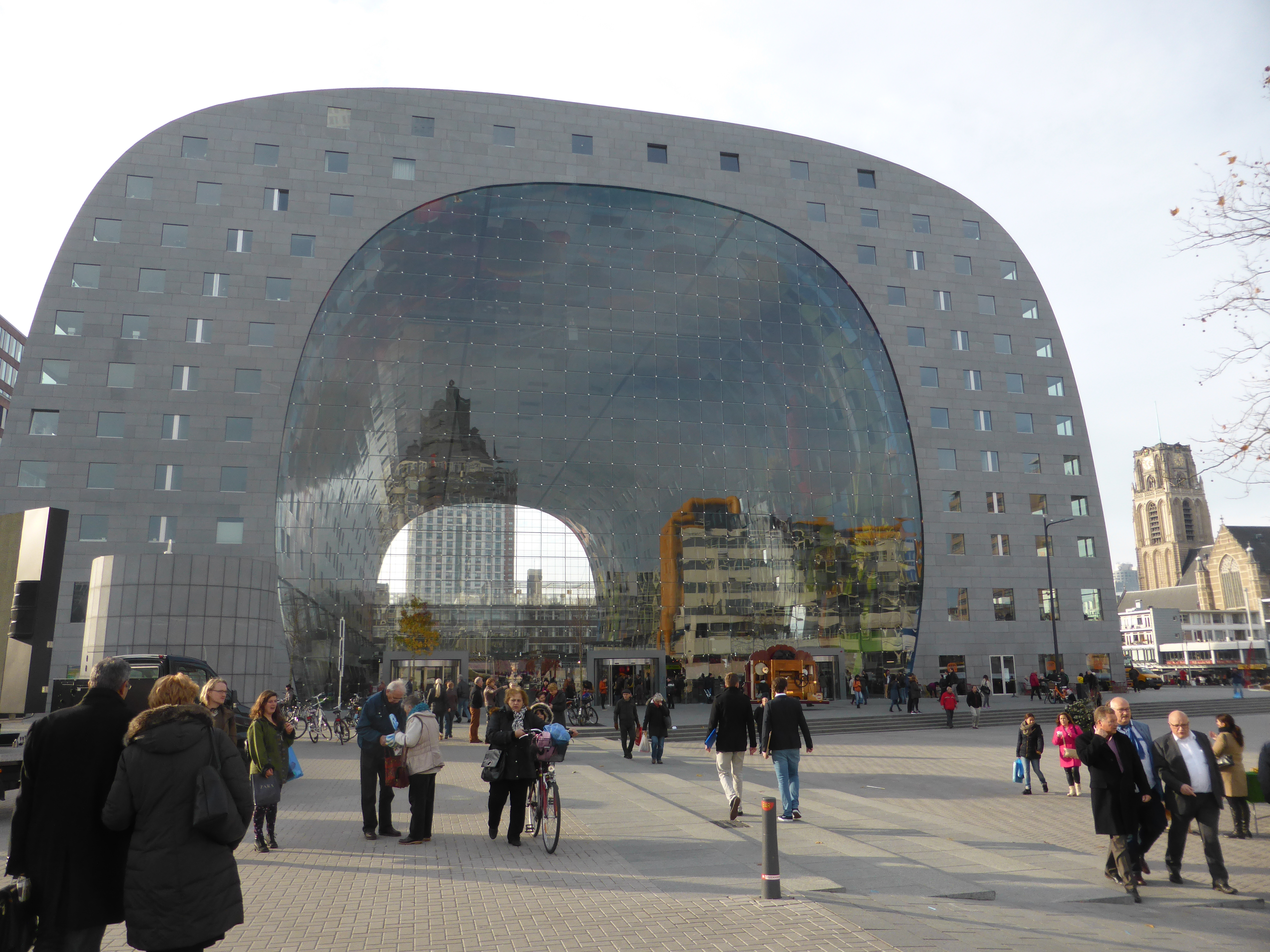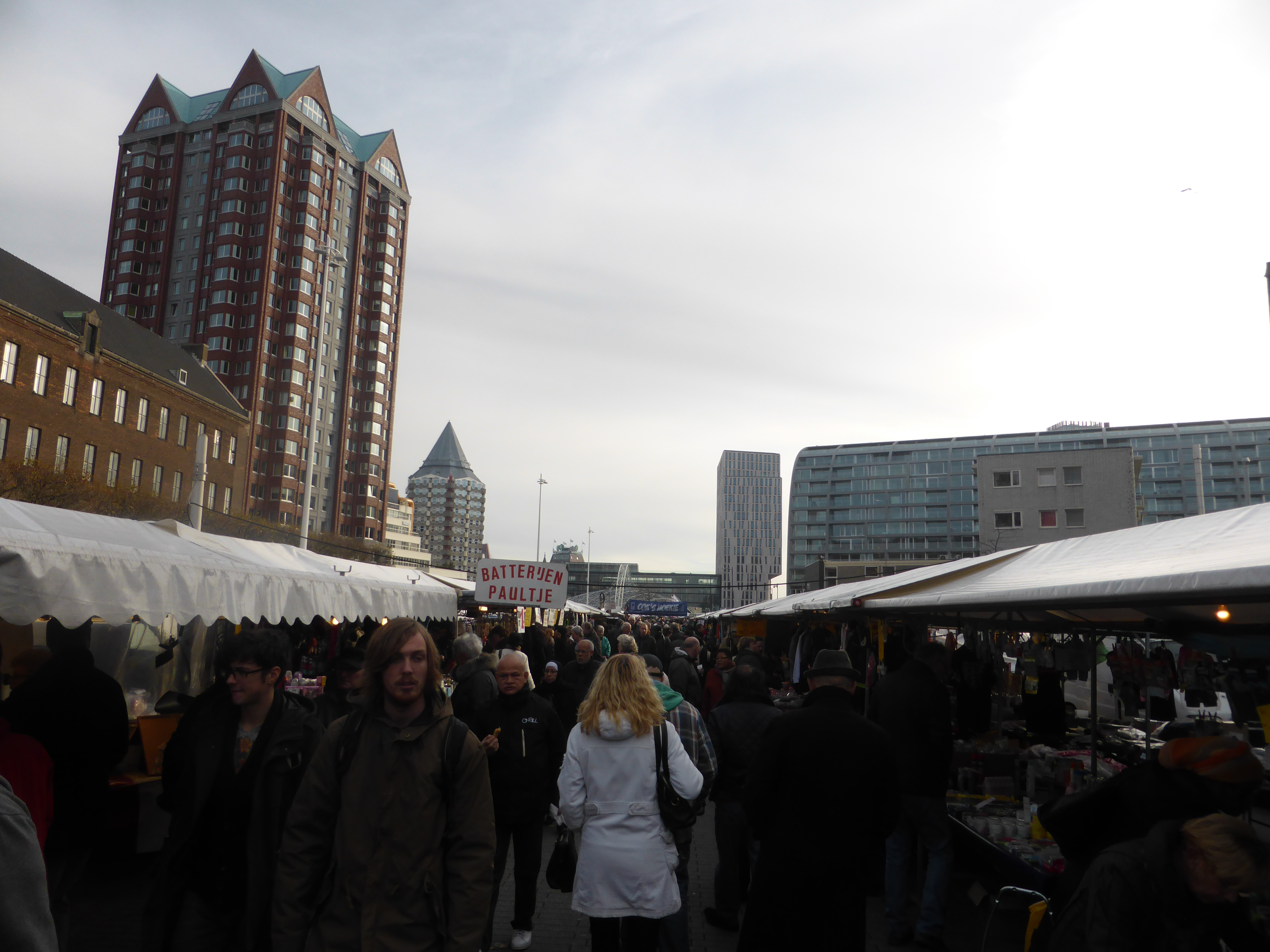 En dan naar de nieuwe overdekte markthal, Jules Deelder noemde hem al “een hangaar voor zeppelins” maar hij is echt heel mooi en indrukwekkend. Een prachtig plafond en natuurlijk veel vaste kramen. Geen concurrentie voor de marktkooplui buiten dit is echt heel anders, eigenlijk heel luxe met hele mooie kwaliteits waren.