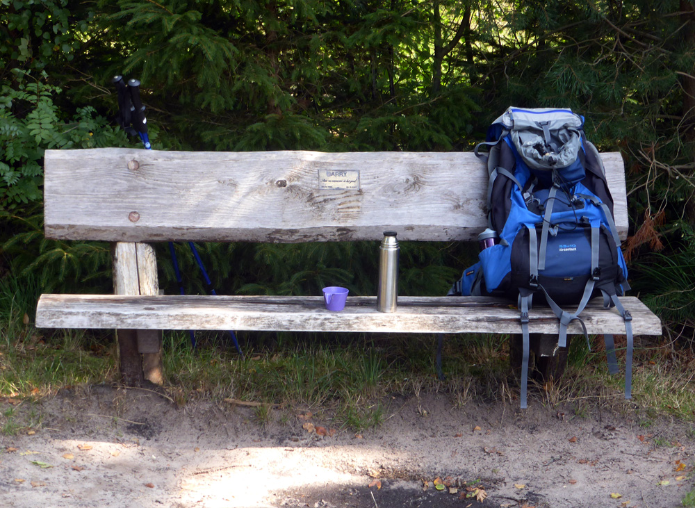 Omdat ik in september en oktober weer een stukje naar Santiago de Compostela ga lopen moet ik ook weer even trainen met mijn rugzak. Nep dingen erin om hem wat te verzwaren. Het lukt weer aardig maar zo nu en dan even af is ook wel lekker en wat is een mooier plekje op een bankje, kijkend over het water van het Leersumse veld.