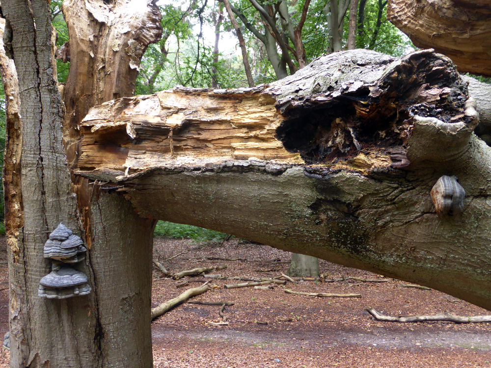 Veel bos en prachtige bomen. Er ligt een dode boom waar je van alles in kunt zien. Ik zie een krokodil die in een boom bijt, tentakels en nog veel meer, kijk zelf, wat zie jij erin?