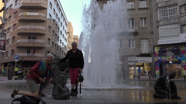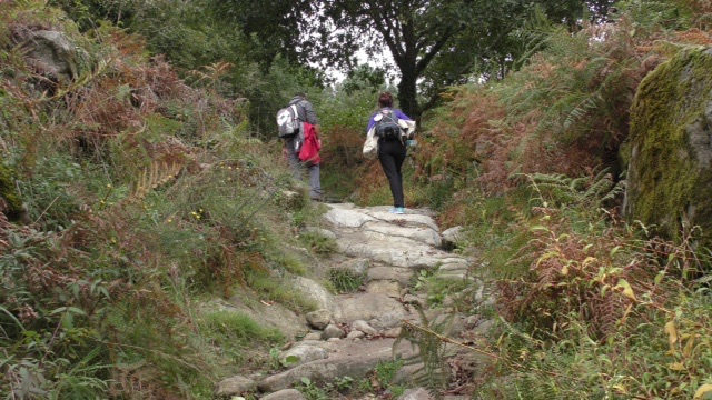 Het rolgordijn dat nauwelijks het geluid van de drukke doorgaande weg tegenhoudt gaat open en het ziet er niet onaardig uit. Het is droog. Onze kamers, ja we slapen in kamers en niet in een slaapzaal zijn 300 meter van de ontbijtplek. Er wordt flink gebunkerd, broodjes en gebakken eieren. Een goede ondergrond voor de 19 km van Redondela naar Pontevedra die we vandaag gaan lopen. Sjan gaat er alleen als een speer vandoor op de voet gevolgd door Annet. De andere vijf beginnen rustig aan de behoorlijke klim die we direct voor de kiezen krijgen. Maar het aardige is dat als je eenmaal boven bent het uitzicht meestal prachtig is ennnn je mag weer naar beneden. Je knieën vinden stijgen aantrekkelijk dan afdalen maar het hoort er allemaal bij. Ondertussen is Anneke aan het saaiste gedeelte begonnen. Zij rijdt het busje dat we bij ons hebben en zo’n dag duurt echt wel lang als je niet door die mooie natuur loopt. Gisteren heb ik dat gedaan en morgen doen we ieder een deel.