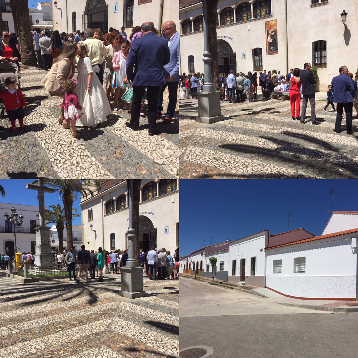 Het is weer een prachtig gebied, de weg is niet al te moeilijk, beetje te vergelijken met Zuid Limburg maar dan iets meer dalen en stijgen. Als ik behoorlijk moe door de spierpijn in mijn bovenbenen in Fuente De Cantos aankom loopt net de kerk uit waar weer een communie was, druk met mooi aangeklede vrouwen en mannen en de kinderen met hun zondagse kleren aan.