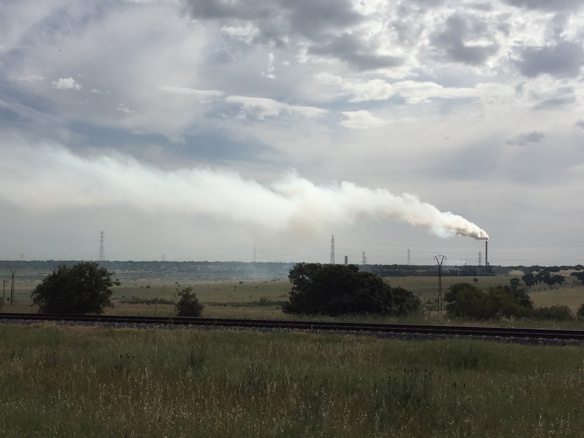 De eerste 8 km zijn niet de leukste. Ik loop langs de kant van een weg in een flinke chemische stank, word er wat misselijk van.