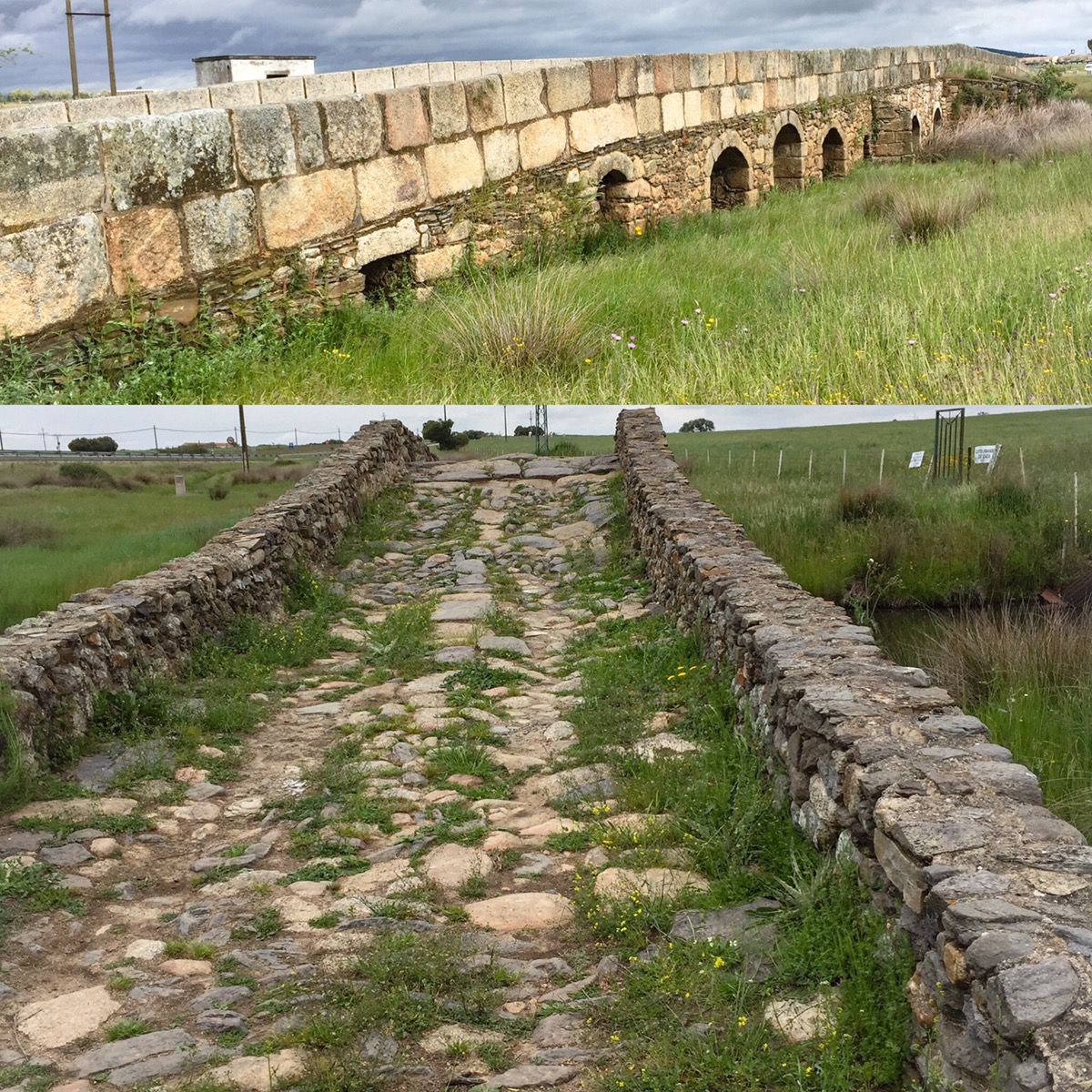 De verwachting is de hele dag tegen maar dat komt niet uit. Alleen tijdens de tussenstop in Valdelor begint het te regenen het blijft verder alleen dreigen . Ik loop weer op de gecombineerde camino en zie veel Romaanse bruggen en moet daar trouwens ook overheen.