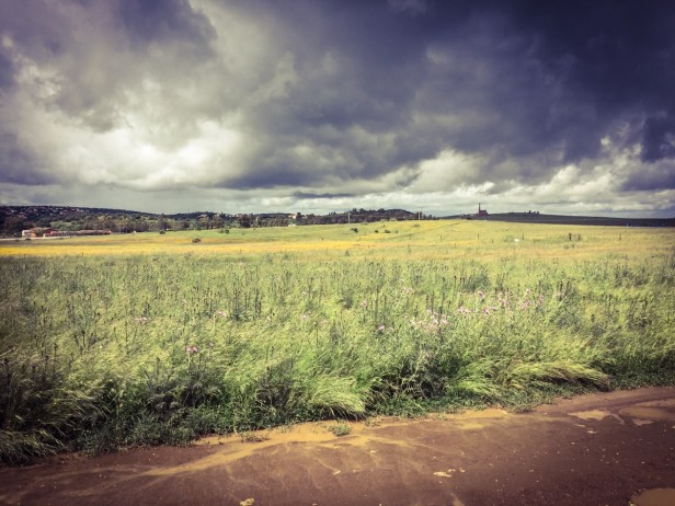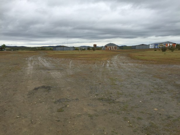 Ik sta op het punt mijn schoenen te verruilen voor mijn crocks als ik achter het hoge gras een paar stenen blokken zie, gelukkig dat gaat een stuk makkelijker. Het lopen gaat zwaar omdat al die modder aan je schoenen blijft zitten en ik heb gewoon geen zin om mijn stokken te pakken, moet die rugzak eerst weer af en je kunt hem ook zomaar niet neerzetten. Ik passeer een heel groot veld met aan een kant een stel oude vervallen gebouwen. Een ideaal decor voor een thriller. Zomaar in niemandsland.