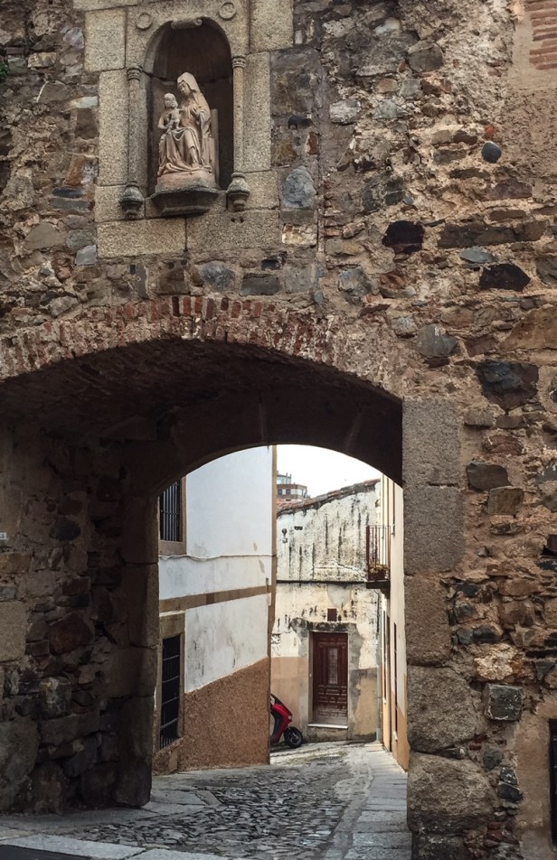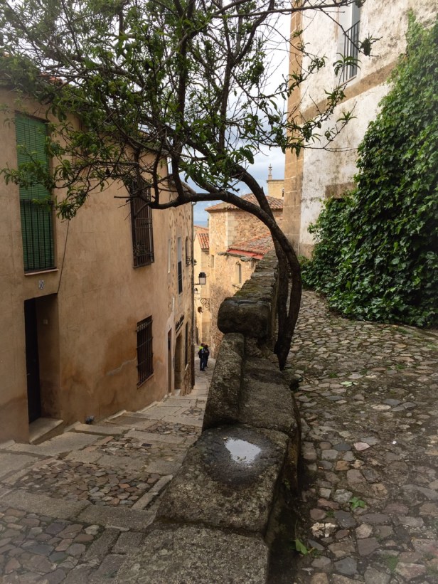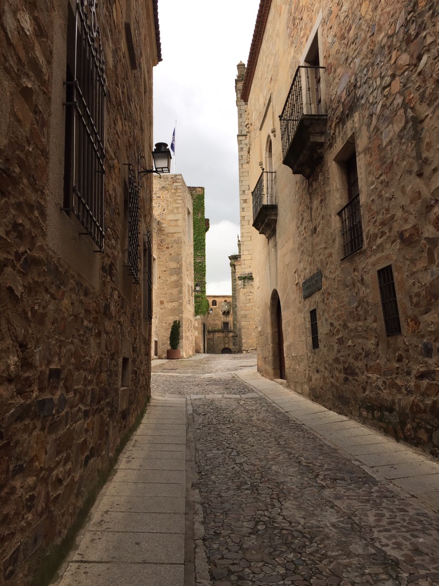 Nog 12 km naar de prachtige stad Cáceres. Misschien nog mooier dan Mérida. Ik heb geen zin in een gemeenschappelijke douche en besluit om in een hostel te overnachten, Kan ik op mijn gemak de knie behandelen, desinfecterende spay en arnica. Het is nog druk in de stad er is een soort middeleeuwse braderie en een stel bandjes op straat. Ik kom hier later nog eens terug om de stad goed te bekijken. Mijn knie is stijf en de straatjes erg stijl dus geen optie om veel te lopen. Morgen stop ik maar na 12 km, even kijken hoe het gaat.
