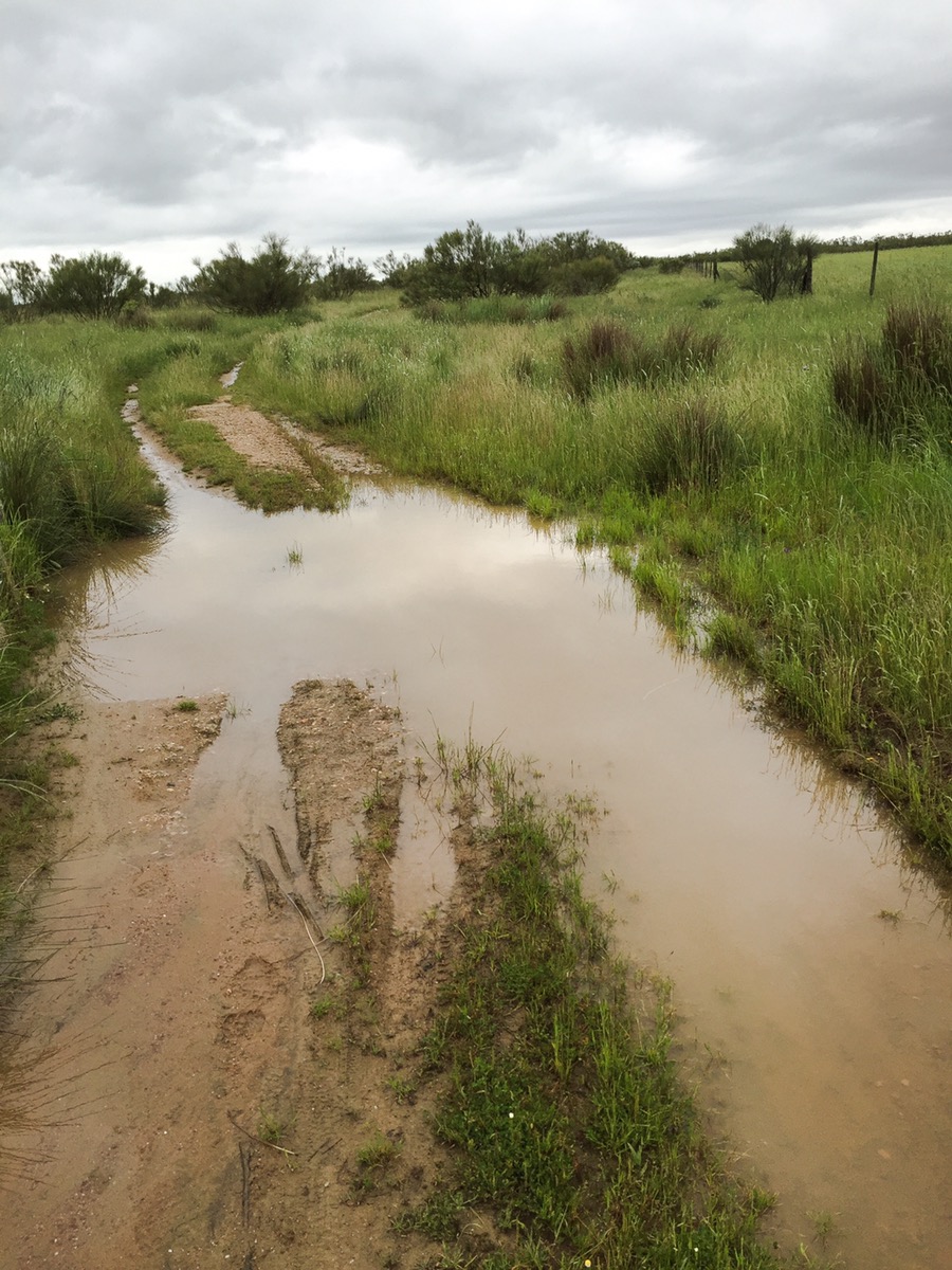 Het regent de hele nacht en ook vanmorgen als ik opsta gaat het nog behoorlijk te keer. Dat wordt dus een poncho dag. Als ontbijt een sinaasappel en een yoghurtje die ik nog in mijn tas heb en om acht het sta ik buiten met poncho. Het is droog en het ziet er naar uit dat het voorlopig zo blijft. Poncho opbergen en windstopper aan en lopen. Dat is slalommen, door al het water dat is vallen zijn sommige stukken wel erg drassig. Ik kom bij een soort beekje en moet toch proberen aan de andere kant de geraken.