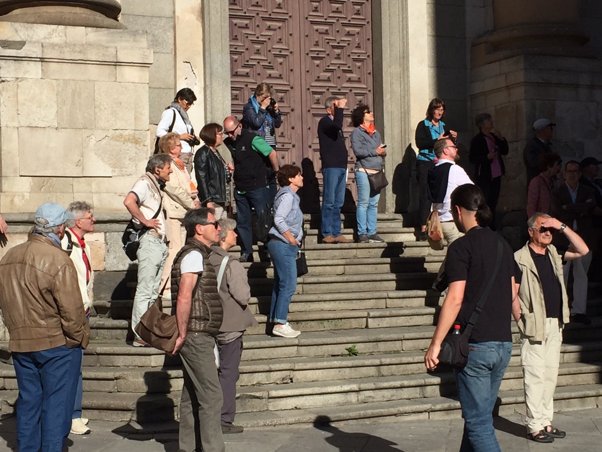 Ik hoorde een vrouw tegen haar man die uitgezakt op een bankje zat zeggen: zullen we nog even naar de Catedral Nueva lopen? Als jij daar blij van wordt ben ik het ook, zei hij zuchtend en moeizaam kwam hij overeind.