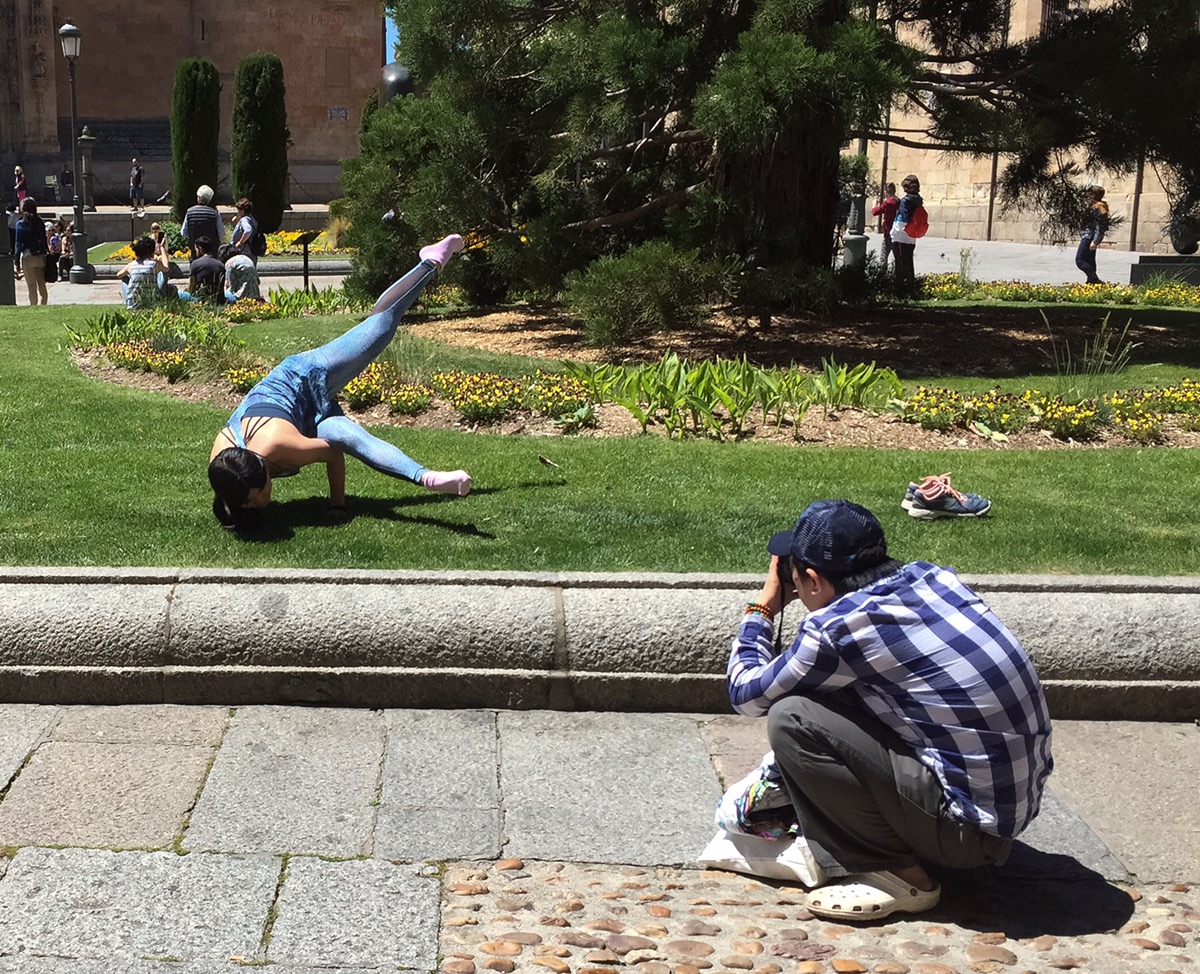 Ik heb alle tijd om mensen te kijken. Heerlijk. En natuurlijk is iedereen bezig met selfies.