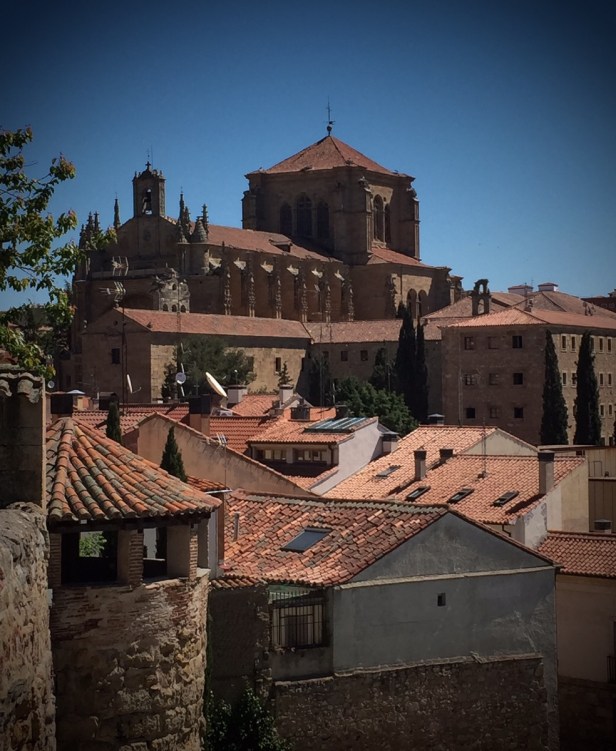 Vijf dagen rust in Salamanca, nou echt rust is teveel gezegd. Rustig aan doen, mijzelf dwingen rustig te lopen en het helpt. Ik heb geen pijn meer en kan nu ook meer genieten van deze mooie oude stad. Nu kan ik een lijstje gaan maken voor wat je echt moet zien maar ik ben niet zo van de lijstjes. Ieder heeft zo zijn eigen voorkeuren. Ik slaap in een hostel  echt midden in het oude centrum. Hier is de oudste universiteit van Europa. Nu nog een prachtig gebouw. Verder een gigantische kathedraal, nog meer kerken, kloosters en je kunt het allemaal bezichtigen. Nu hoor je als echte tourist natuurlijk alles te bekijken maar gelukkig ben ik geen echte en bekijk  dus alleen de dingen die ik echt leuk vind. Zo ben ik b.v naar het museum van klassieke auto’s geweest maar ook naar het museum voor art deco. Daar wordt er goed op gelet dat je geen foto’s maakt. Mij vertrouwde ze waarschijnlijk niet want er liep de hele tijd een mannetje achter mij.