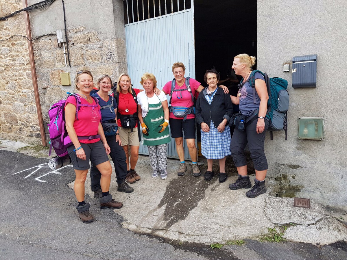 John als een echte haan neemt zijn vijf kippen op sleeptouw en lootst ze langs een snelweg. Het is niet leuk meer. Dan komen ze in een prachtig natuurgebied en het lopen wordt weer aangenaam. Nog 11 km maar na twee uur lopen is het nog steeds 11 km. Het voordeel van niet een gemarkeerde route lopen is dat de kleine gehuchtjes waar je door loopt de mensen geen rugzakkers gewend zijn. John als een echte Heiboer met zijn vijf vrouwen trekt veel aandacht. Ze belanden in een heuse wijnmakerij en krijgen een kleine workshop.