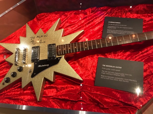 Denk je aan Stockholm dan denk je al snel aan de Gamia Stan oftewel de oude stad met zijn vele monumenten. Storkyrkan-de grote kerk, het paleis, Köpmangatan dat is de Verkopersstraat. Het vele water met zijn mooie oude houten schepen en natuurlijk de Koninklijke musea. Maar voor dit alles ben ik vandaag niet in Stockholm. Ik ben er voor ABBA. Wie kent ze niet de Zweedse popgroep met Björn, Benny, Anni-Frid en natuurlijk Agnetha. Stiekem waren veel mannen behoorlijk onder de indruk van haar en ik moet bekennen, ik was ook wel behoorlijk gecharmeerd van deze blonde Zweedse. Het is gek dat als je het hebt over de Zweedse vrouw deze altijd hoogblond is alleen zie je veel meer donkere vrouwen hier in Stockholm. Maar goed ik dwaal af. Ik ging dus naar het ABBA museum. Ja een echt museum waar je alles te weten komt van dit populaire viertal.