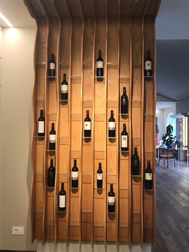 Het is eind van de ochtend en ik ben op weg naar Poliziano. Dat is niet Italiaans voor politie maar het is een wijnhuis en wel een van een hoge kwaliteit. Na een lange zoektocht en informatie van mijn gastvrouw de Engelse Laura kom ik uit bij twee totaal verschillende wijnhuizen. De eerste is dus het luxe wijnhuis Poliziano. Wij zijn met zes personen om onze mening te geven over vier wijnen. De inrichting van de wijnhuis waar we gaan proeven is strak en heel modern. Grote glazen staan al klaar en de eerste wijn wordt ingeschonken. Neus goed in het glas, draaien en dan het eerste slokje in de mond ronddraaien, eigenlijk meer kauwen. Spannend. Dit is een nog jonge wijn, lekker om te slobberen maar geen hoogdraver. Dit is een blend, een mix van verschillende soorten druiven maar we komen hier voor de topklasse en die komt dan ook. Het is de Vino Nobile di Montepulciano DOCG. Ja dat is is een hele mond vol. Dat DOCG staat voor gecontroleerd en…..gegarandeerd. Je moet je als wijnboer hier strikt houden aan allerlei regels en die worden dus gecontroleerd. Bij deze wijn krijgen we een heerlijk stukje zeer oude pecorino kaas. Een perfecte combinatie. Na deze kaas smaakt de wijn nog beter. Deze wijn ligt eerst 20 dagen in een stalen tank en dan minstens 20 maanden in een eikenhouten vat. We hebben de mazzel dat twee van onze meeproefers met de camper zijn, zij zijn zo vriendelijk mijn gekochte wijn terug naar Nederland te rijden.