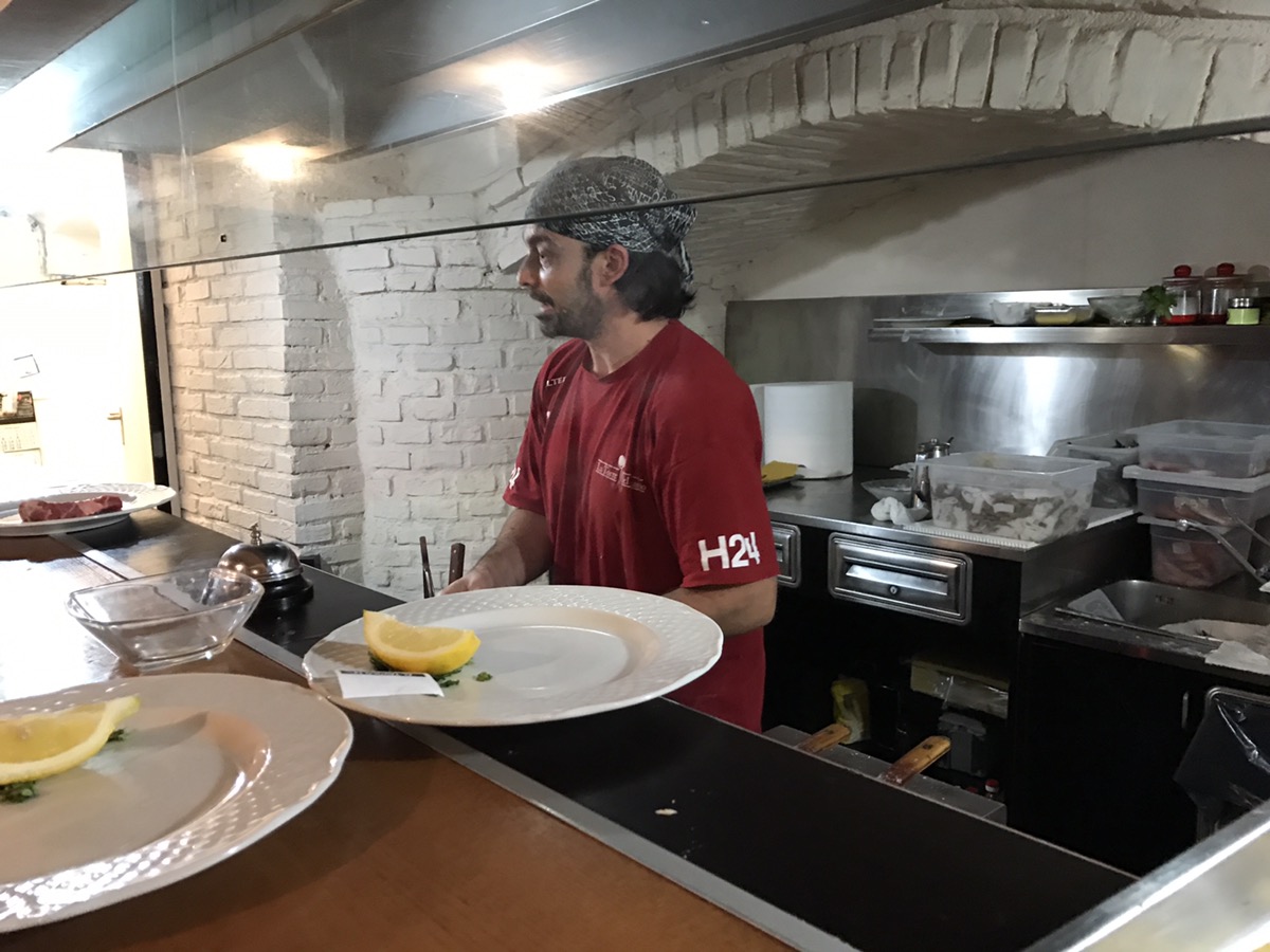 We zitten in het restaurant en zijn de enige. Het is voor Italiaanse begrippen vroeg. Als wij ruim twee uur later klaar zijn is er nog steeds niemand bijgekomen. Bij het afrekenen zegt de kok speciaal voor ons open te zijn gegaan. Dat is service.