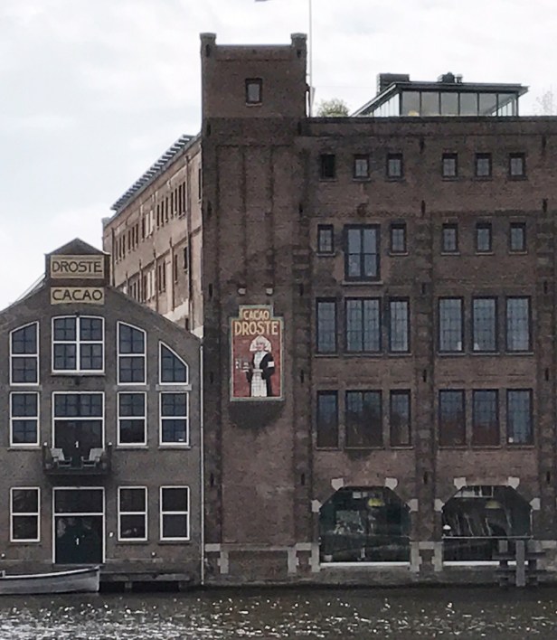 Deze gedachte komt weer terug als ik die al sinds 1974 uit deze stad weg ben een dagje Haarlem doe. Vandaag doe ik eens de andere kant van het Spaarne. Een beetje een vergeten stukje maar met de kleine smalle steegjes vol met bloemen heel gezellig. Zo lopend aan deze kant van het Spaarne kom ik bij de brug waar de Droste fabriek eens was. Hij is niet meer in gebruik als chocoladefabriek maar het gekke is dat ik gewoon de geur van toen in mijn neus heb. Mijn oudste zus ging met een aantal vriendinnen vakantiewerk doen bij Droste, flikken of zoiets inpakken. De eerste dag de beste werd ze bij het verlaten van de fabriek uit de rij gehaald en moest ze de hele tas leegmaken en werd gekeken of je niet zomaar wat chocola mee naar huis nam. De vriendinnen dachten dat als ze door het poortje liepen de controleur kon zien of je wat bij je had en dat mijn zus er op die manier uitgehaald was. Gelukkig ging het niet op die manier maar gewoon steekproef gewijs.