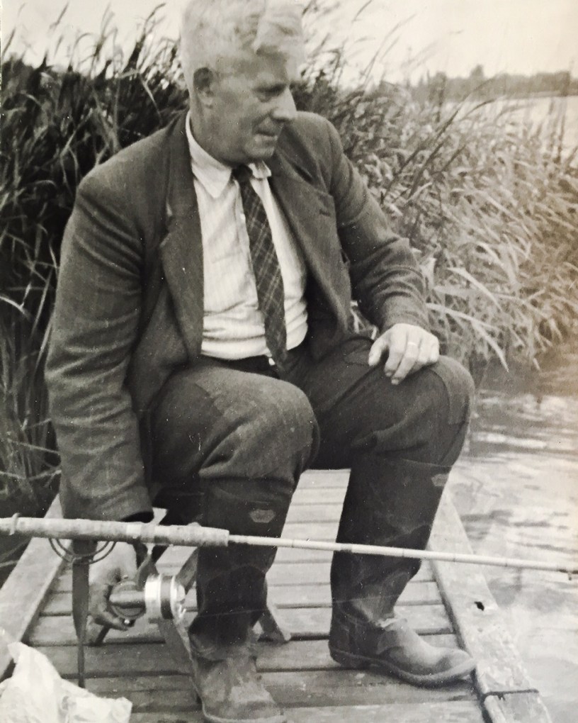 Voor velen het ultieme rustmoment. Het gaat bij mij niet om het vangen van vissen. Alleen al het aan de waterkant zitten, rustig turend naar de dobber. Dat geeft rust, even het ontvluchten van de hectiek van alle dag. De zwart/wit foto is een afbeelding van mijn Opa omstreeks 1950. Hij was een rasechte visser. Hij nam de vissen ook mee naar huis en die spartelde dan in het bad voordat ze gereed gemaakt werden om te consumeren.