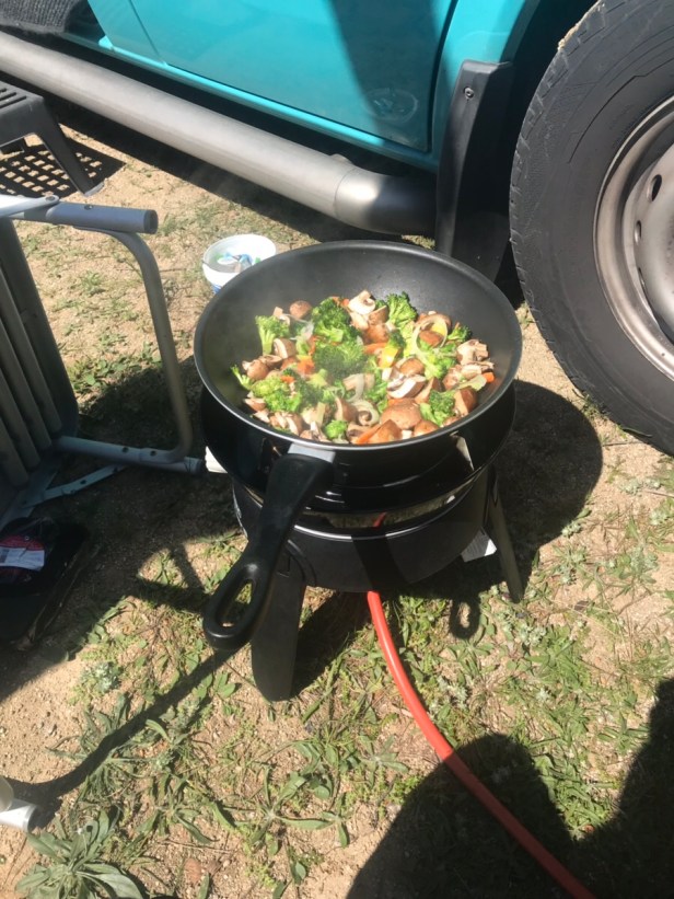 Yep, Spanjaarden kunnen op dergelijke dagen gezellig zijn. Hier bij ons geen dampende bassen, maar wel vol & gezellig geroezemoes. Had ook wel wat. Nu is de camping helemaal leeg op een paar ‘buitenlanders’ na.