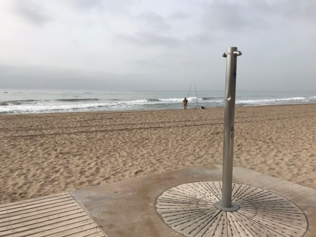 Als je zoals ik inmiddels gewend bent aan wild/vrij overnachten is een camping wel weer even wennen. Dan heb ik het niet over de prijs, dat weet je. Een camping geeft werkgelegenheid aan veel mensen en dat is goed. Maar die drukte. Nu was het misschien wel extra druk vanwege de paasdagen, maar een herrie. Op een paar schermen live voetbal en keiharde disco muziek met stevige bassen. Ik heb nog mazzel dat mijn rechteroor het niet meer zo doet zoals het zou moeten maar zelfs ondanks dat dreunde het behoorlijk door. Toen dat eenmaal voorbij was viel de reguliere stroom uit en ging naast mij een reusachtig aggregaat aan. Niet alleen van afmeting maar ook van volume. Toch nog wel wat geslapen. De volgende ochtend geen water en dus ook niet douchen. Voor mijn algehele hygiëne sta ik op een camping. Helaas. Even afrekenen, camper met een persoon op een postzegel plaats, twee nachten €52,00. Nu sta ik met inmiddels nog twee anderen op een stil stukje aan het strand. 10 meter verwijderd van de stranddouche. Eerst even de zee in en dan onder deze douche. Het is even fris maar er is wel water. Ik kies er toch voor im zoveel mogelijk vrij te staan.