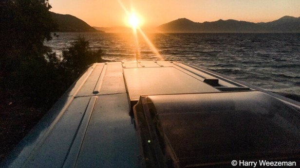 Het zit natuurlijk tussen mijn oren maar het is net of Sprintertje nu ook weer prettiger rijdt. Net zoals zijn baasje op zijn tijd lust ook hij wel een slokje. We zoeken een dieselbodega en gaan voor de diesel extra. Kwaliteit en we worden bediend door de bodegahouder himself. Deze ziet dat wij uit Nederland komen en vertelt dat ons koningspaar 5 km hiervandaan hun huis heeft. Als WA er is drinkt hij iedere avond een biertje met hem. Lachen. Maar het houdt de gemeenschap wel bezig. Het is trouwens een fantastisch plekje hier. Hele mooie kust.