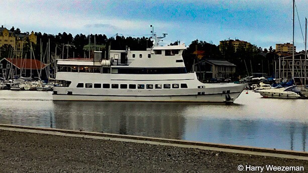 We komen uit in Hudiksvall. Aan de haven staan zeker 10 campers en wij sluiten aan. Toen we bij de markt weggingen begon het te regenen maar nu schijnt de zon weer. Er vliegen hier veel visdieven, mooie slanke vogels maar brutaal. Als ik iets aan de waterkant kom, duiken ze uit de lucht en pikken op mijn hoofd. Zwaaiend met mijn armen loop ik weg. We gaan het leuke stadje verkennen. Ook dit stadje is twee keer door brand verwoest. De laatste keer ergens in 1900 zoveel. Alleen de kerk en wat vissers huisjes bleven gespaard. De rest is dus betrekkelijk nieuw. Uiteindelijk komen we op een gezellig terras uit en duiken in de lounge kussens. Er komt een Zweedse man en vrouw bij ons zitten en na enkele biertjes wordt het steeds gezelliger. Zij gaan met een boot een paar uurtjes varen met eten, drinken en live muziek. Dit is dus wat indrinken. We horen dat morgen op onze route een whisky festival is en daar moeten we echt heen gaan. Nu wil het toeval dat ik deze Whisky die hier gestookt wordt net bij de zoon geproefd had en lekker. Dat is dus een mooi geluk dat er dan net dat jaarlijkse festival is. We nemen als Facebook vrienden afscheid en gaan lekker koken bij de camper.