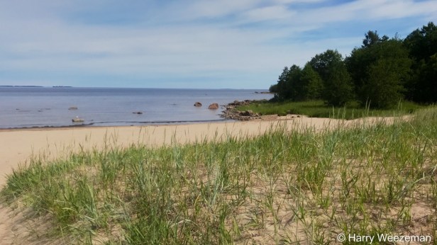 Twee uur is voor ons wel weer genoeg in town en we gaan richting Oostzee. Met een rustig gangetje van zo’n 70-80 km/u is het heerlijk ontspannen rijden hier op de stille binnenwegen. Het is opvallend dat de meeste Zweden flink afstand houden op hun voorganger. We komen uit bij Scutskår en vinden, nou vinden? De plek staat aangegeven op de handige app, park4night en ligt aan het strand. Maar voor het strand is een bos en in het bos woont niet de boze wolf maar wel duizenden muggen. Het wordt flink insmeren uit een van de vijf verschillende middeltjes die we bij ons hebben. Maar toch zijn er nog een paar fanatieke dames die mij wat bloed afhandig maken. Het is dus vroeg binnen zitten.