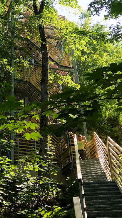 En nu al die trappen weer op naar boven. Het valt mee, de conditie is nog best redelijk en mijn knieën vinden het naar boven gaan prettiger dan naar beneden.