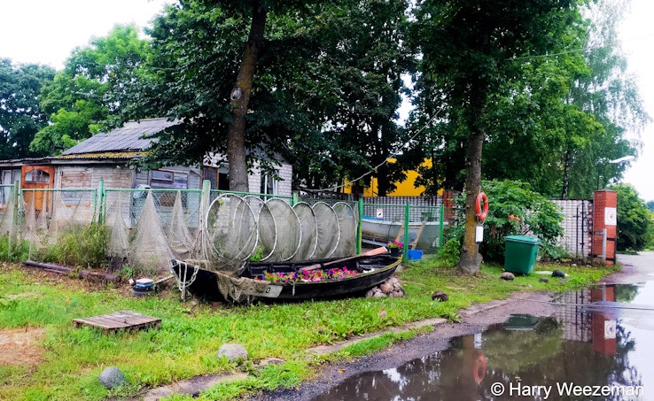 Kwart voor acht, ik hoor trompet muziek en daarna een harde vrouwenstem uit de boxen bij het hotel. Ik kijk naar buiten en zie een groepje jongeren in marstempo naar het hotel lopen. Voorop een fanatieke man in beige kleding en een rood sjaaltje. Hier moet ik meer van weten dus snel naar buiten. Voor ieder huisje staan jongeren keurig in de rij te wachten tot de beige man ze ophaalt om in het gelid naar het bordes van het hotel te lopen. Ondertussen schalt uit de speakers de gezongen muziek. Het doet een beetje Chinees aan. Wat is dit. Op het bordes staan de leiders die de jongeren toespreken. Dit alles duurt een half uur. Ze doen gezamenlijk wat gym oefeningen en het lijkt of er een gekozen wordt tot een soort winnaar. In het gelid lopen de groepen weer terug naar hun huisjes en even later loopt iedereen weer met een laptop naar het hotel en wordt het heel rustig. Nu ben ik van nature nogal nieuwsgierig. Ik wil weten wat dit alles is. Ik hen mazzel, er gaat een wat oudere jongere naar de douches en ik spreek hem aan. Hij spreekt Engels. Ik vraag of dit een zomerschool of zoiets is en dat is het dus. Het zijn allemaal Russische kinderen tussen de 15 en 17 jaar die hier twintig dagen zijn om nog meer te leren over algoritmes en meer. Alleen kinderen die excellent zijn in wiskunde zijn uitverkoren om hier aan deel te nemen. Hij zelf is hier met zijn vrouw en kind om een gastcollege te geven. Hij is Rus maar woont en werkt in Zwitserland. Dus hier in Estland Russische kinderen, alle informatie in dit hotel en camping staat ook in het Russisch. Ik ben weer wat wijzer geworden.