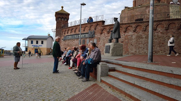We blijven steeds de kustroute volgen en alle plaatsjes waar we komen lijken op elkaar. Appartementen, kamers die verhuurd worden het is net als bij ons aan de Noordzee-kust. We vinden nog een plekje op een niet meer in gebruik zijnd vliegveld ook weer pal aan zee. Er loopt hier een prachtig fiets/wandelpad van meer dan honderd km zo langs de kust. Gefinancierd met Europees geld en echt heel mooi. Er wordt dan ook veel gefietst en gewandeld. Wij gaan ook een stuk fietsen en rijden naar Kolobrzeg. Dit is echt een plaats met alleen maar hoge hotels en resorts. Het is hier nu al file lopen dat moet in het drukke seizoen nog veel erger zijn. Rijen met souvenirs winkels en eettenten.