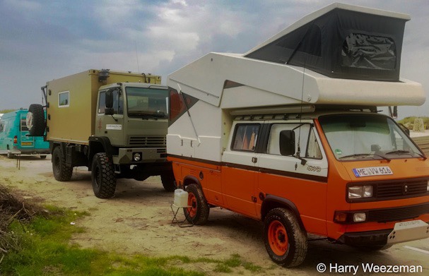 De kust is hier aan dit gedeelte van Polen mooi en druk. Het hoogseizoen is voorbij maar je waant je hier in Benidorm. Veel appartementen met daarin voor het grootste deel zilveruitjes, (lees pensionado’s). Voor het grote deel Duitsers en dat is natuurlijk te verwachten, zo dicht bij die Heimat. We vinden toch weer een mooi plekje in Leba, een paar meter van het strand. Het water van de Oostzee is nog aangenaam van temperatuur en het is heerlijk helder water om te zwemmen. We staan hier niet alleen maar er is een groepje van vier met grote expeditiewagens. Voor velen een ideaal maar voor het milieu niet echt goed. Ze lusten nogal wat diesel ongeveer 2 of 3 km op een liter.