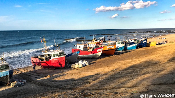 De netten en bootjes worden daar met tractoren uit de zee getrokken.