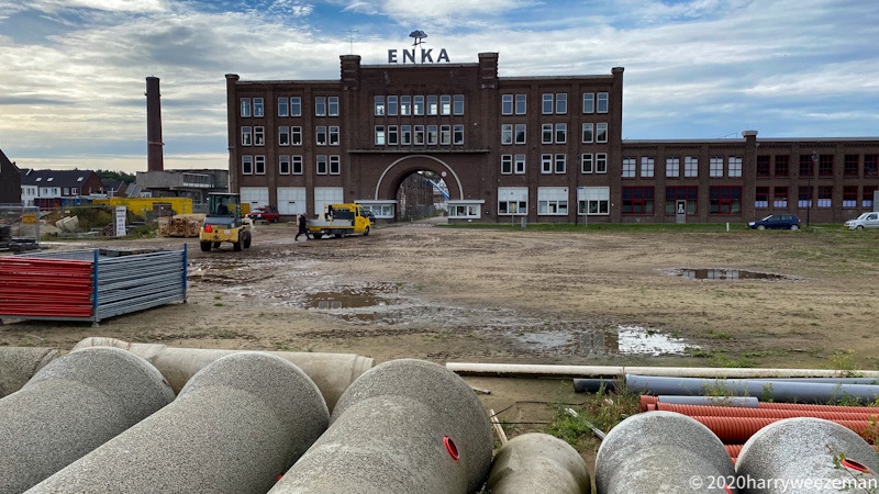 In Ede zijn diversen “ highlights “. Vandaag loop ik langs drie historische punten. Het station onderdoor en aan de Enka kant start ik de wandeling. Ik hoef niet ver te lopen om bij het eerste historische punt te komen. Na vierhonderd meter sta ik voor wat eens de trotse Enka fabriek was. De naam Enka staat voor Nederlandse Kunstzijdefabriek NK dus. In 1922 opende hier J.C. Hartogs zijn tweede fabriek. Het was op dat moment de grootste fabriek van Nederland. Er werkten veel jonge vrouwen maar Ede zelf kon er niet zoveel leveren daarom werd in heel Nederland vrouwelijk personeel geworven. In het midden van de jaren twintig kwamen er dagelijks drieduizend (3000) jonge vrouwen naar de fabriek. Hartog was keihard voor zijn personeel. Er mocht niet gepraat worden en als je even een sanitaire stop wilde kostte je dat 1 cent. Het waren lange werkdagen en de pauze was maar twintig minuten. De gemeenteraad van het bijbelse Ede was behoorlijk overstuur dat vanaf 1924 ook op zondag gewerkt moest worden maar ja, economie.