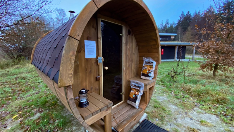 Intussen zijn de wandelaars terug, nat, moe maar voldaan zoals dat heet. nu is het fijne van deze camping die trouwens het hele jaar open is dat er ook een op hout gestookte sauna gehuurd kan worden. Dat is met dit weer natuurlijk wel heel comfortabel en we hebben er behoorlijk gebruik van gemaakt.