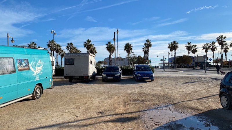 Parkeerplaats waar ook veel campers staan, strand en zee aan de overkant. 139 Carrer d’Isabel de Villena, 46011 Valencia