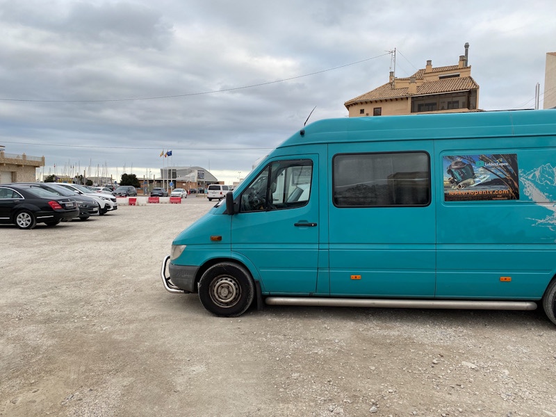 Wij staan hier vrij of zoals ook wel gezegd wordt, wild. Niet op een camperplaats of camping maar hier op een parkeerterrein 50 meter naast het strand.