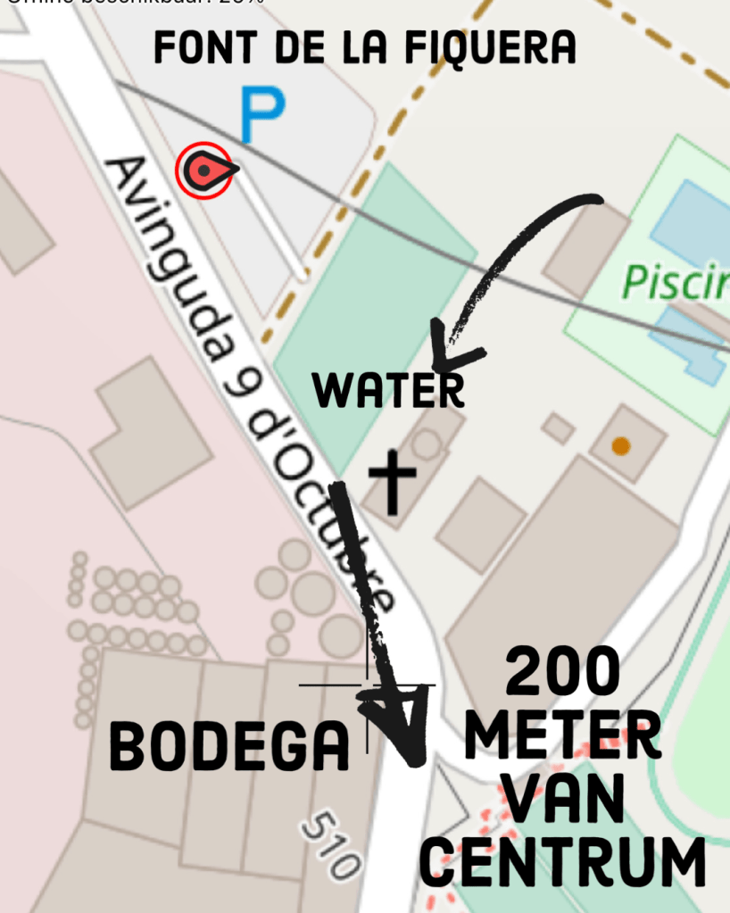Plaats om te overnachten in de camper. adres: avinguda 9 d’octobre, la Font de la Figuera. Coördinaten N38°48’31.6”. W0°52’59.9”