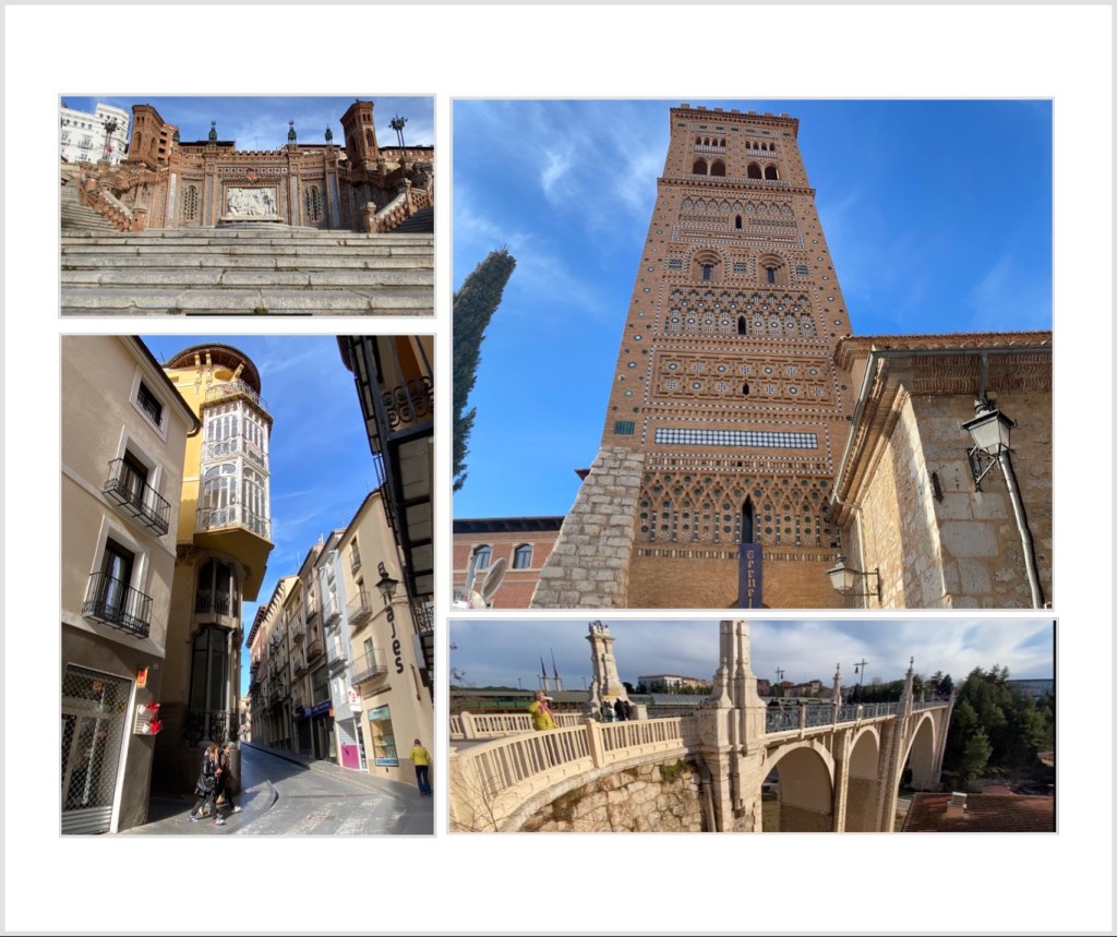 Teruel is echt een bezoek waard. Nu door het feest een beetje moeilijk te zien maar het heeft prachtige gebouwen in de Mudéjar bouwstijl. Het ligt aan de rivier de Turia en wordt door ravijnen omgeven van de Siërra Albarracin en de siërra de Gudar. Vanaf de achtste eeuw lange tijd onder Moors bewind en dat is nog duidelijk te merken. de laatste Moorse moskee werd gesloten in 1502. In de burgeroorlog is de stad behoorlijk verwoest. Gelukkig zijn er vier Mudégar torens ongeschonden gebleven. Deze zijn trouwens UNESCO werelderfgoed. Het zit er dik in dat we hier nog een keer terug komen.