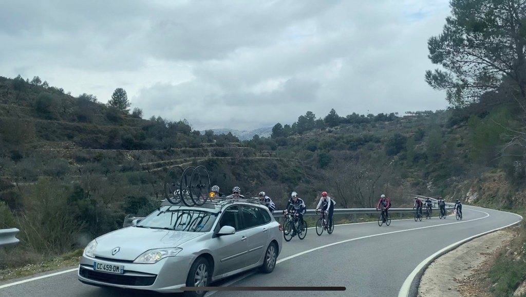 We nemen niet de kortste weg naar huis maar gaan nog even door een gebied waar veel amandelbomen staan. Deze moeten in deze tijd van het jaar volop in bloei staan. Het weer is niet om over naar huis te schrijven maar ik doe het toch. Het is bewolkt en behoorlijk koud. Door die kou van de afgelopen weken staan de bomen bijna nog niet in bloei. De weg door de bergen is altijd mooi het is alleen even oppassen voor de vele wielrenners die hier trainen.