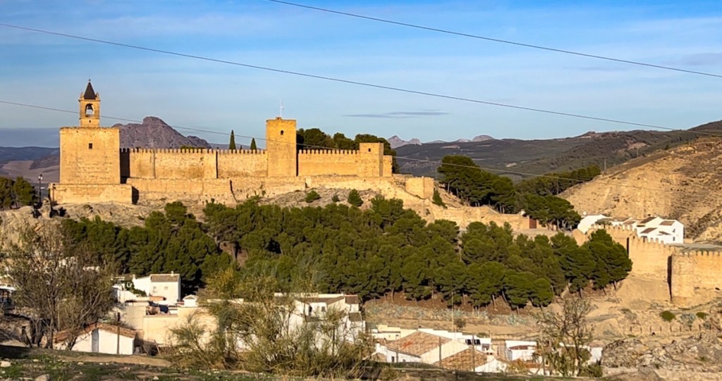 We eindigen vandaag in Antequera. Met zicht op de Alcazaba, het Moorse fort vinden we een redelijk vlakke plaats waar campers staan. Goed voor deze nacht.