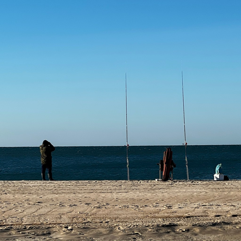 Wat een mooie plek om te bezoeken. Alleen een visser, twee verliefde jonge mensen die lekker in het water aan het stoeien zijn en twee strandlopertjes. Verder niemand. We lopen een eind op dit prachtige strand.