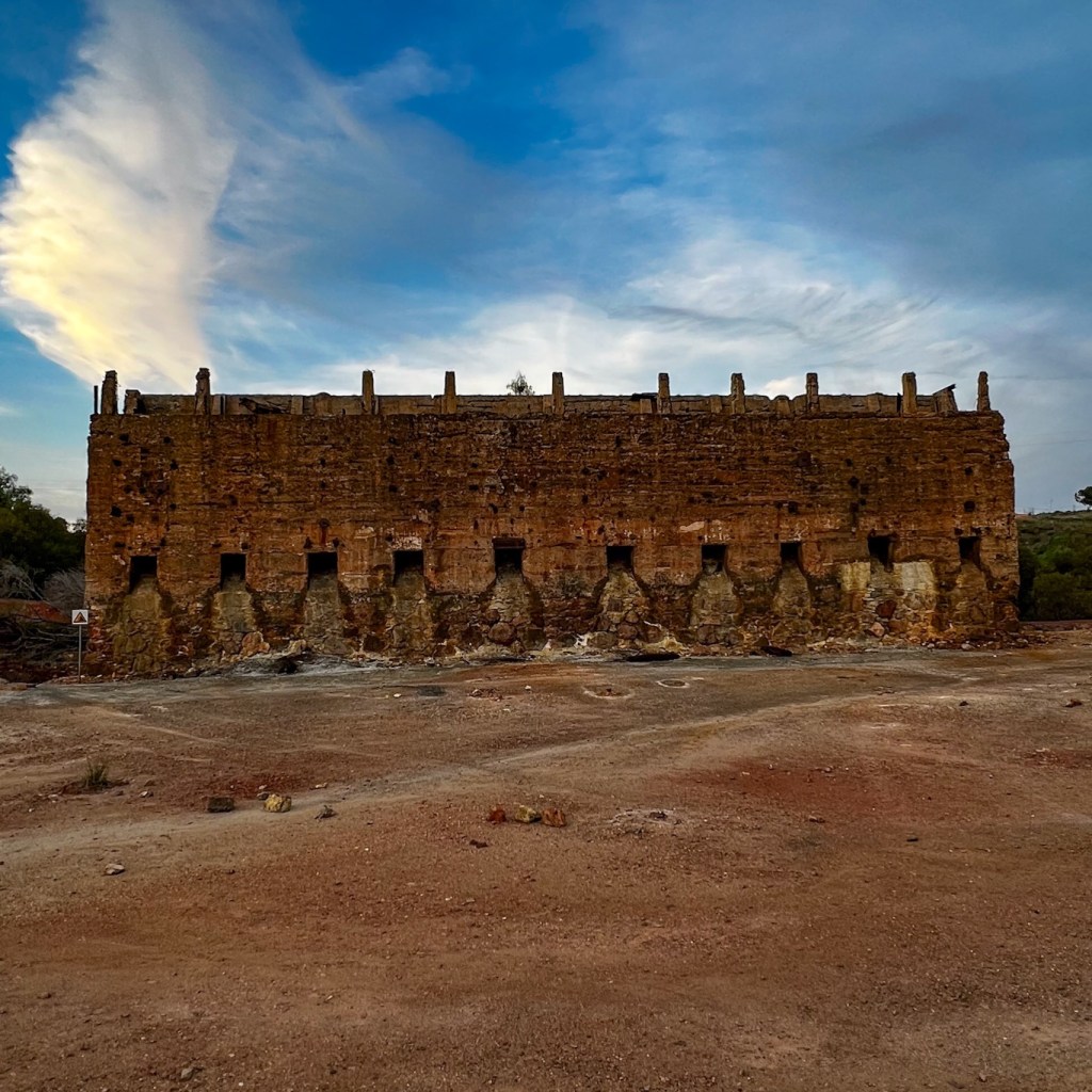 Wij gaan natuurlijk even kijken hoe het er nu uitziet.De oude Minas de São Domingos is nu een soort openluchtmuseum. Het oogt luguber. Naast een nu giftig meer staan de ruïnes van oude huizen, een laatplatform van het oude station, kantoren en nog veel meer.