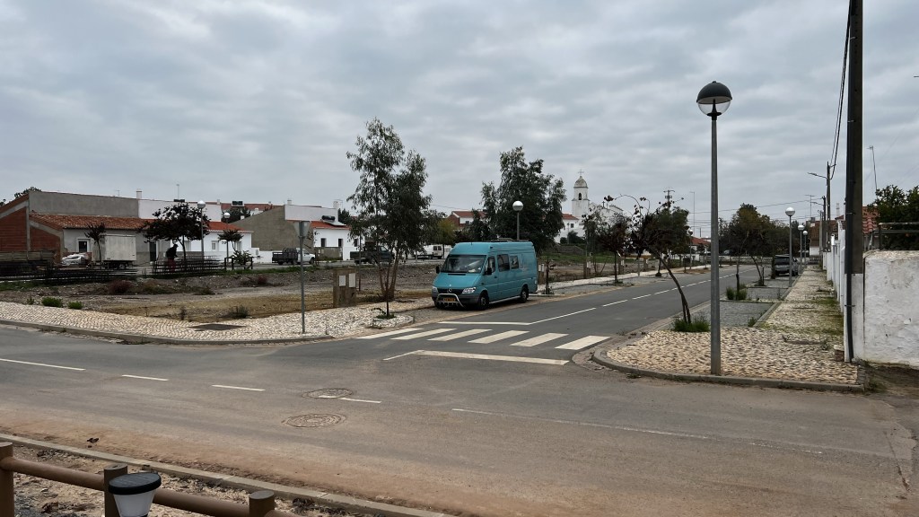 Vanuit Calanas nemen we de binnendoorweg naar Portugal. Net over de grens rijden we de op de kaart aangegeven stippelweg. We hebben trek in koffie maar het enige café in het eerste dorp dat we tegenkomen is gesloten. De weg waar we op rijden is zo smal dat we niet kunnen stoppen om zelf koffie te zetten. Gelukkig maar want nu komen we uit in Mina de São Domingos. Direct aan het begin van het dorp is een klein cafeetje en die is open. Binnen staan we wat te stuntelen met het bestellen van koffie. Een cortado in het Spaans heet hier natuurlijk anders. De vrouw, Maria, die ons helpt begint opeens Nederlands te spreken. Ze heeft 14 jaar in Nederland gewoond. Amsterdam en Hoorn. Zij vertelt ons veel over de streek en het dorp waar we nu zijn. Eens door de mijnindustrie die hier ook was, een welvarend dorp. Het was het eerste dorp in Portugal waar elektrische straatverlichting kwam. Maar nu na het sluiten van de sterk vervuilende mijnen een dorp waar veel mensen uit weggetrokken zijn.