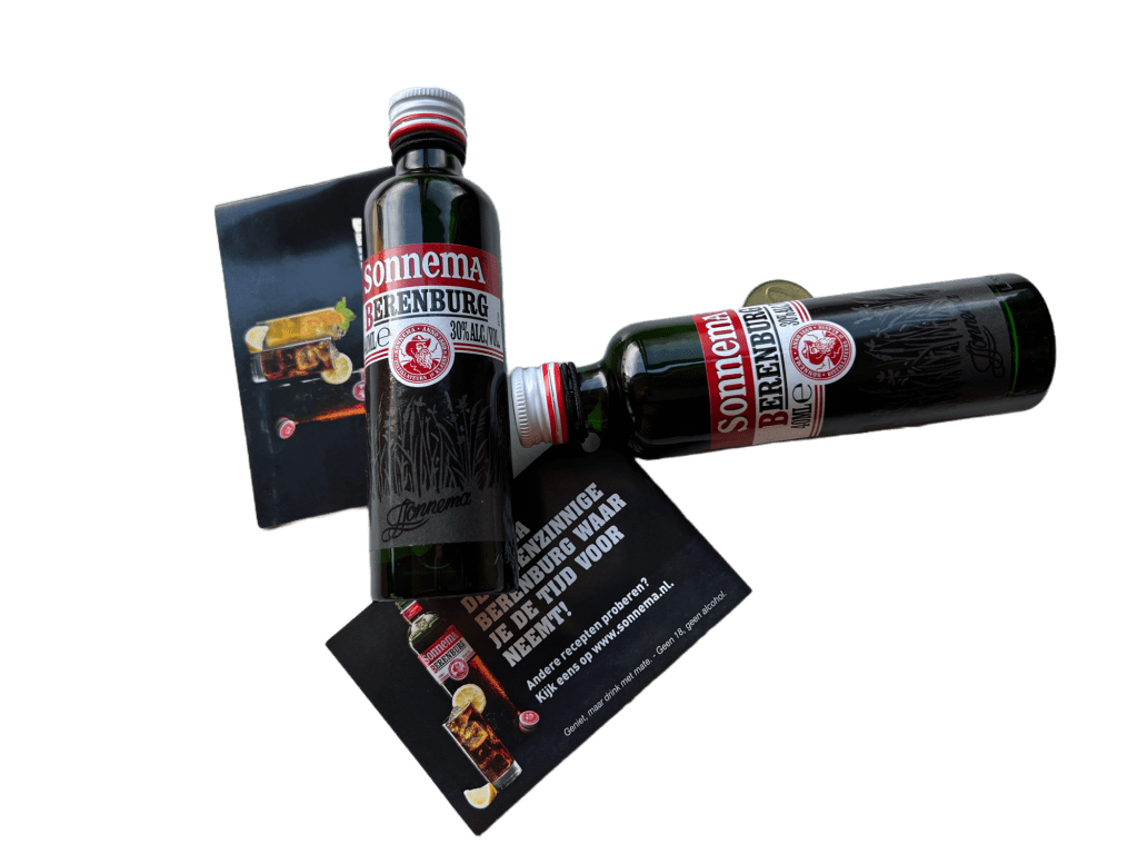 Na deze kerk gaan we op zoek naar de stokerij van Sonnema, je weet wel die van Berenburg. Na een stukje lopen vinden we Sonnema maar het proeflokaal is voorlopig gesloten. Teleurgesteld lopen we terug naar het centrum en ploffen neer op het terras van de stadsherberg. Een lentebok is ook niet verkeerd. We lezen het boekje van de tocht nog eens door en ping….. Hier bij de stadsherberg krijg je op vertoon van je stempelkaart ieder een flesje berenburg. Zo eindigt deze dag die toch al niet meer stuk kon met een glimlach op ons gezicht.