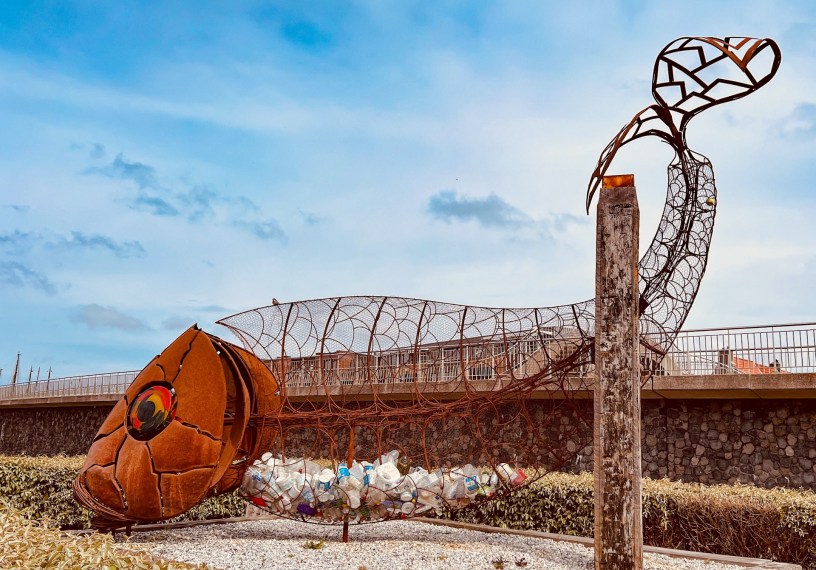 We gaan op zoek naar een van de elf fonteinen in de elf steden. Deze ligt in de haven. Hij heeft de vorm van een potvis. het verhaal wil dat de potvis verdwaald is en niet meer leeft. Het is even wachten maar eens in de ? tijd komt er uit zijn bek een krachtige waterstraal. Het duurde zolang voor dat gebeurde dat ik het bijna miste.
