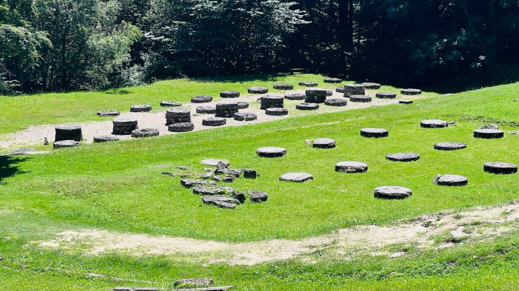 Het is 7 juli en we rijden naar de oude hoofdstad van Dacia, Sarmizegetusa. Het ligt bovenop een berg, een grote open plek in het bos. Het eerste stuk over een smalle haarspeldweg en de laatste kilometer stijl de hoogte in lopen. Deze plek neem je niet zo makkelijk in maar het is de Romeinen uiteindelijk toch gelukt.