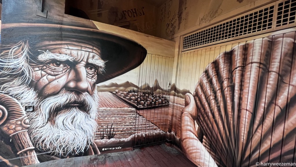 Weer een prachtig muurschildering van de Pelgrim met schelp.